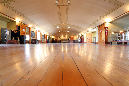 The main floor includes a two-story entry, living room, parlor, music room, library, conservatory, dining room, billiard room, kitchen, and maid's quarters. A Tiffany chandelier hangs in the dining room. Five bedrooms and three full baths are on the second floor. The entire third floor is a ballroom. The walls in several rooms have hand-painted canvas coverings. A full basement houses the butler's quarters, laundry, heating system, walk-in icebox, wine cellar, and storage rooms. The 20-inch-thick brick and concrete walls serve as insulation for the gas heating system.