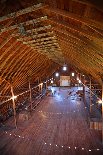 Premium lumber, purchased in the late 1920s from the Foster Lumber Company, was placed in storage until construction could begin. An auditor for Foster Lumber Company, Harold Mangus, had a natural architectural ability and helped with the impressive barn design. Diagonal under-sheeting was used for increased support and insulation and house siding was used on the exterior for its attractiveness and as advertising for Foster Lumber Company. The cathedral-like loft was used for hay storage. Four openings in the loft floor allowed hay to be pushed down to the runway below for distribution. The three, six foot tall metal cupolas, provided ventilation for the haymow.