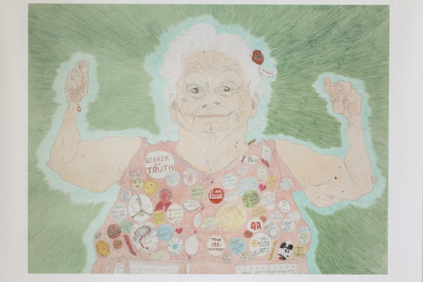 Elizabeth "Grandma" Layton is an 8 Wonders of Kansas Art finalist because of the pencil and crayon contour drawings she started at 68 as therapy for her depression resulting in 1,000 drawings that addressed social issues.