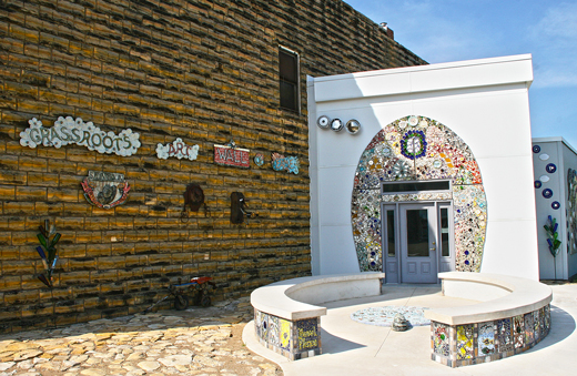 Three abandoned 1897 downtown native limestone buildings were renovated in the 1990's to exhibit fascinating grassroots, self-taught, visionary art environments. Permanent exhibits include Kansas artist's Inez Marshall's brightly painted limestone sculptures and Ed Root's concrete, colored glass and rock embedded sculptures. You'll see Herman Divers' life-sized motorcycle and car made so sturdily from pull-tabs that you could sit on it! In addition the art center represents over 22 Kansas and Midwest self-taught artists in an endless flow of tickle-your-fancy recycled mediums such as barbed wire, bones, and chewing gum to share with the public. Outside, the Post Rock Courtyard displays elements of distinctive North Central Kansas post-rock architecture and its artistry. The guided tour also includes two other grassroots art environments, the Florence Deeble Rock Garden, and Mri-Pilar's, Garden of Isis.