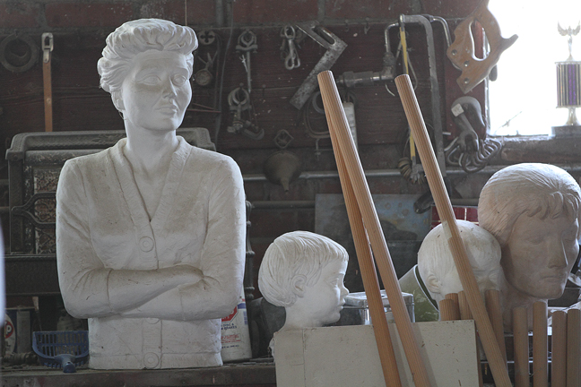 The sculptures that Pete carves are mainly out of limestone. Although our area of Kansas has plenty of limestone available for carving, Pete also uses the limestone from Indiana, which is much harder and easier to work with. Pete has been commissioned to do many works including the sculptures of the four famous Kansans (Dwight Eisenhower, Amelia Earhart, William Allen White, and Arthur Capper) that are located in the rotunda of the State Capitol building in Topeka.