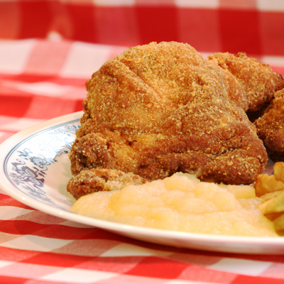 Ray's approach to his fried chicken recipe (the batter) was discovered on trial and error, but it is most definitely a different taste than the other tastes found in Crawford County. He also serves German Slaw, German Potato Salad, baked or fried potatoes and Frontenac Bread.