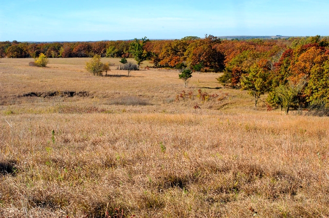 Hike into the Cross Timbers -- and directions to get there. From U.S. Highway 54 and Kansas Highway 105, go south two-and-one-half