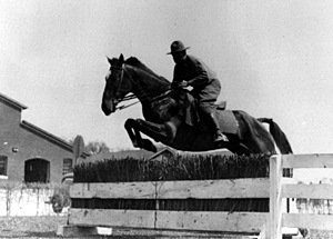 Horse training at Ft. Leavenworth. Photo courtesy U.S. ArmyThe 10th Cavalry joined Gen. John J. Pershing's punitive expedition into Mexico in 1916. From then until 1931 the 10th patrolled the border with Mexico. In 1931, the mission changed and the squadrons took on training support at Fort Leavenworth, Kan.; Fort Myer, Va.; and at the United States Military Academy at West Point, N.Y. With the onset of World War II, the 10th was brought together again at Camp Funston (Fort Riley), Kansas.