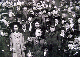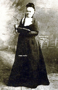 A postcard from 1901 showing Carry Nation with a group at Rochester, New York. . Photo courtesy kansasmemory.org (KSHS)