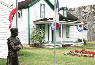 120-pound Frederick Funston stands in front of the boyhood home.A 25-minute film details the life of Funston.