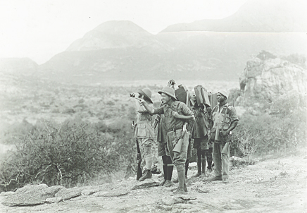 | Martin and Osa Johnson near Ndoto Mountains enroute to Lake Paradise via camel caravan. Photo courtesy the Martin and Osa Johnson Safari Museum, www.SafariMuseum.com. |