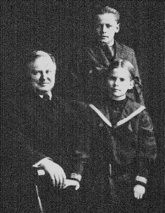 Photo: William Allen White with his children, Bill and Mary, standing by his side in 1914. Photo courtesy Kansas Historical Society