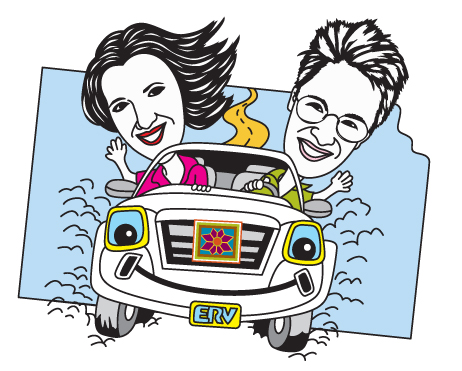 WenDee Rowe with the lipstick and Marci Penner with the "ups" in her hair.